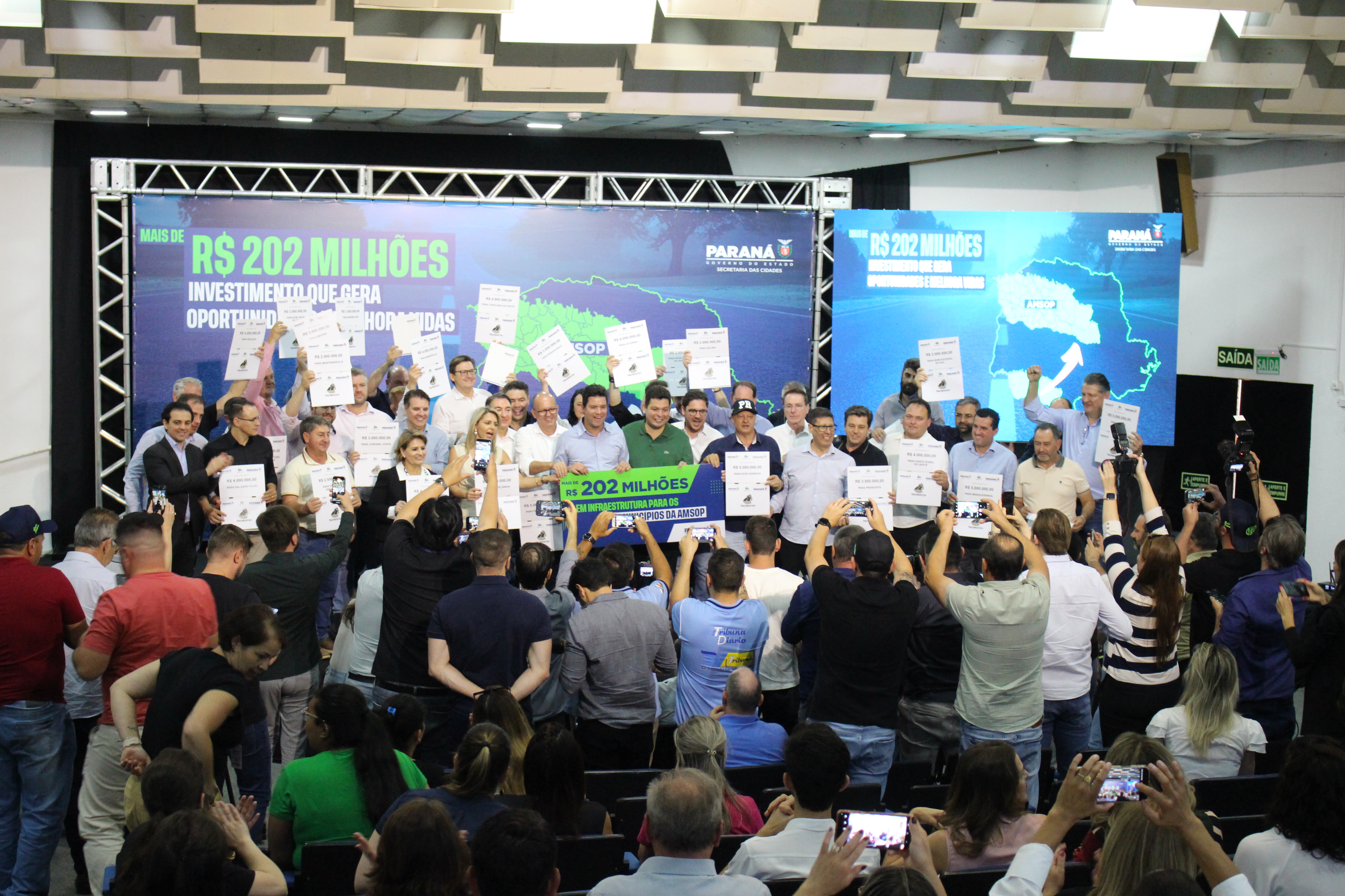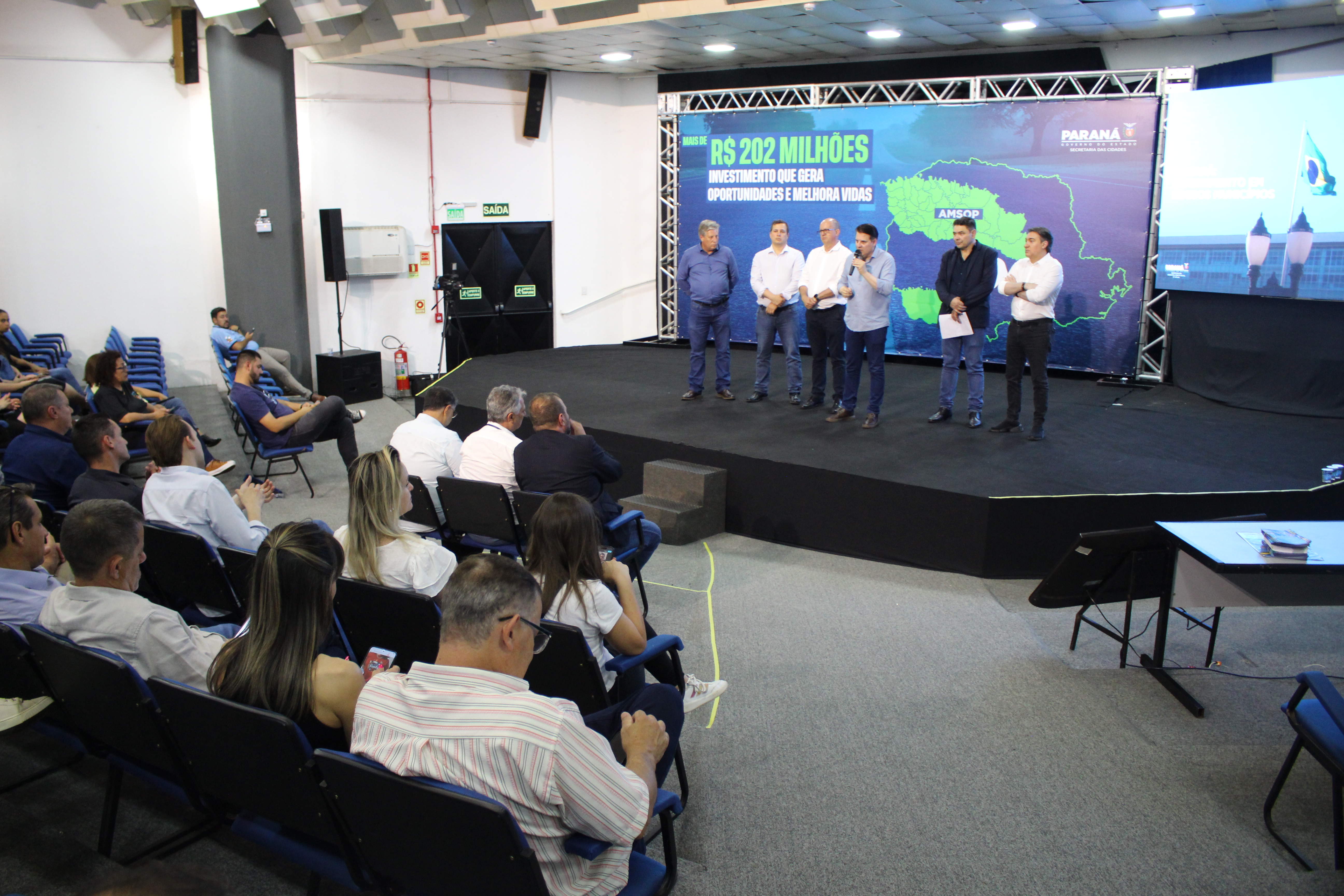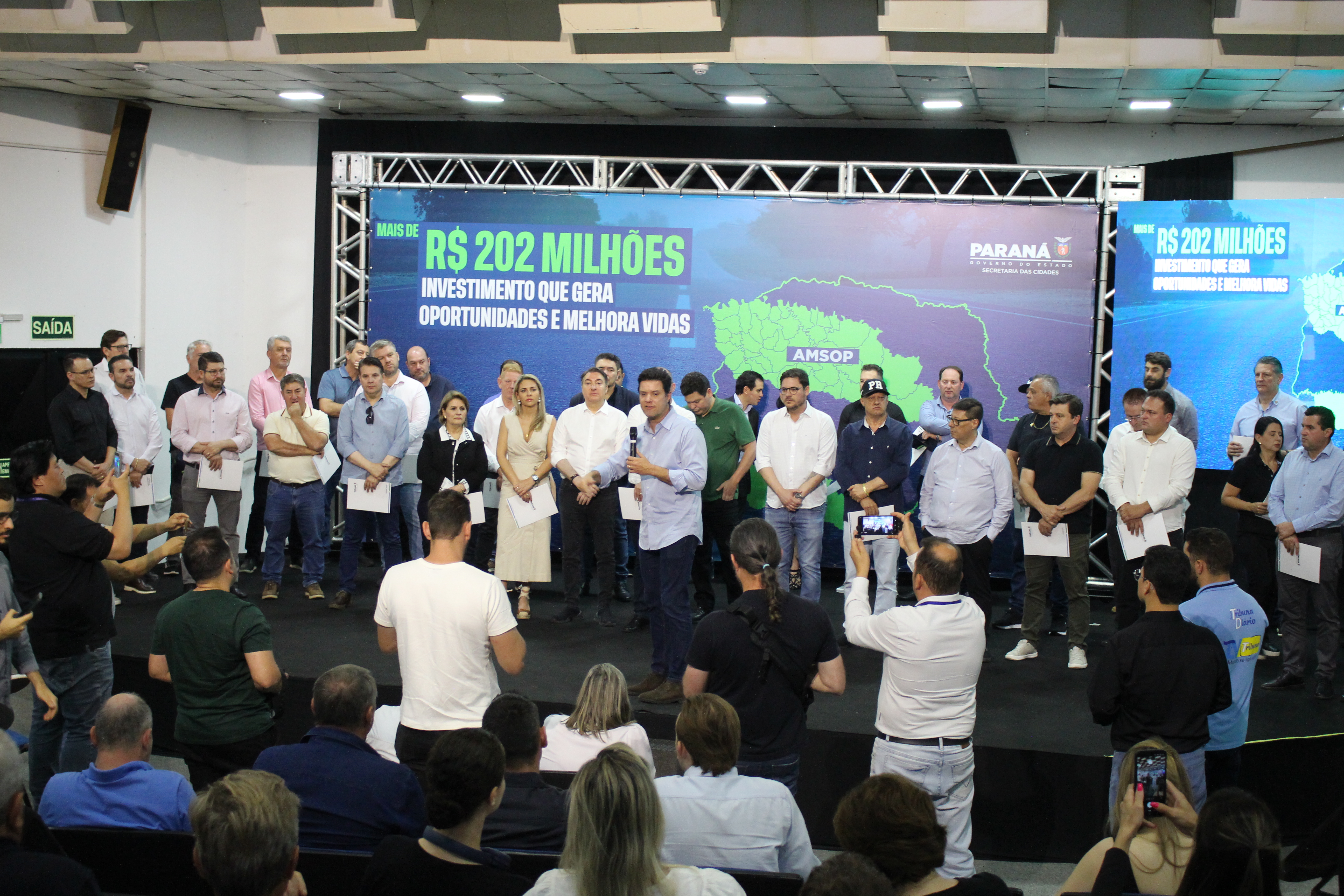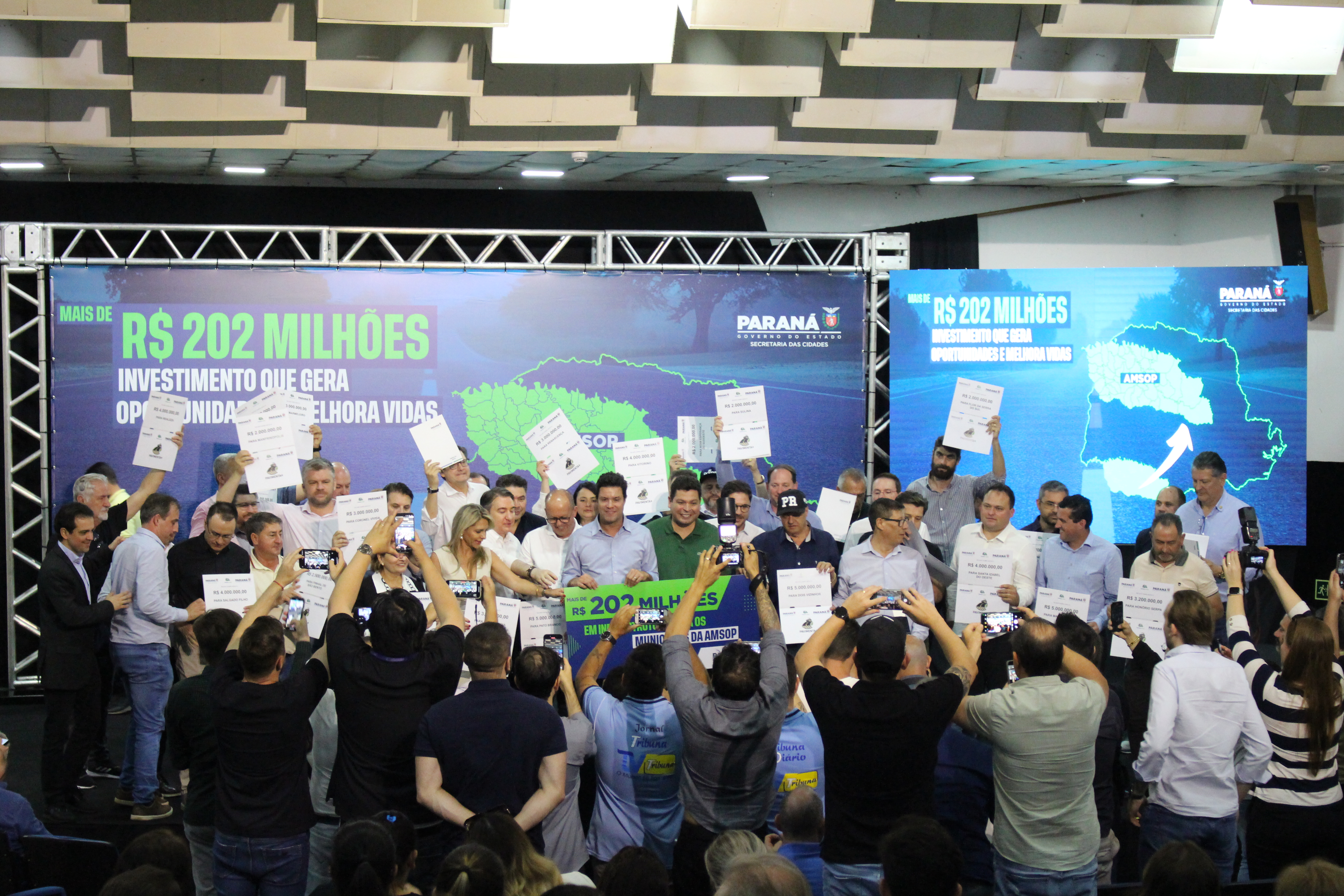 O 1º Encontro de Prefeitos e Vereadores do Sudoeste, realizado nesta terça-feira, 11/11, pela Associação dos Municípios do Sudoeste do Paraná (Amsop) e Associação das Câmaras Municipais do Sudoeste do Paraná (Acamsop), durante a Expopato, em Pato Branco, teve o seu ápice com o anúncio do governo do Estado, através do secretário estadual das Cidades, Guto Silva, em destinar R$ 202 milhões para recape asfáltico nos 42 municípios da região.