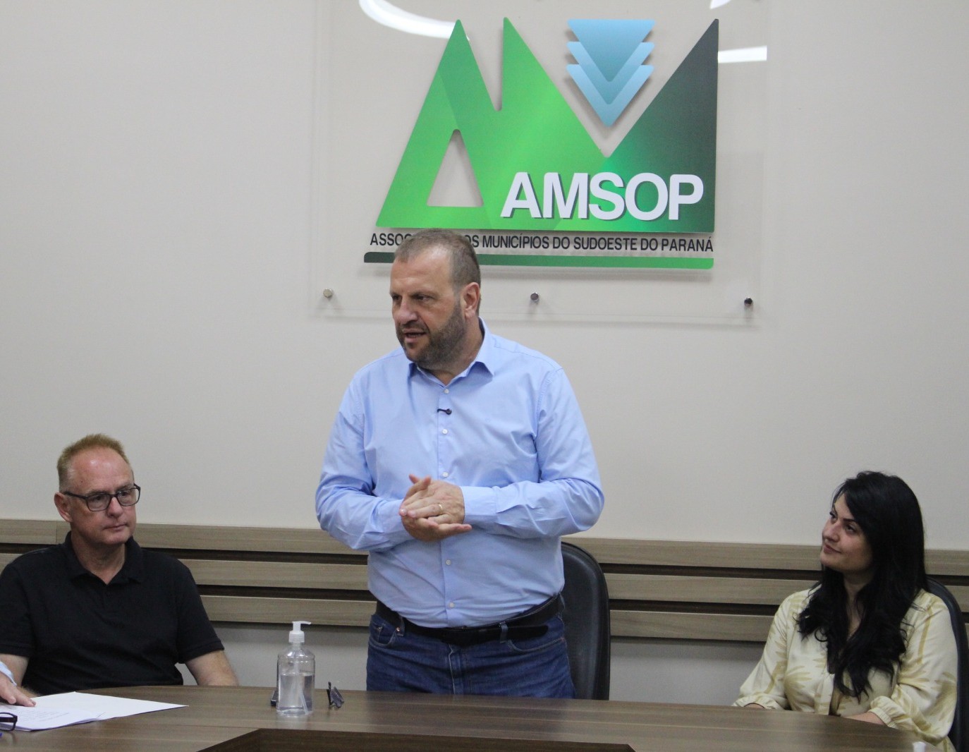 A Associação dos Municípios do Sudoeste do Paraná (Amsop) recebeu, nesta sexta-feira, 06/02, a visita do secretário estadual do Desenvolvimento Social e Família, Rogério Carboni, que efetuou a entrega de kits do programa Fortalece Paraná para dez municípios da região.